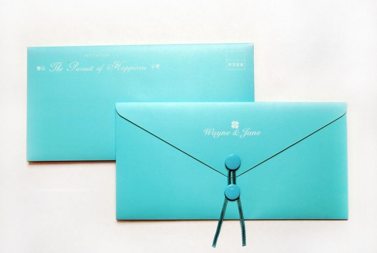 有別於一般傳統大紅喜氣的設計,大膽使用典雅的松石綠,內襯手繪花紋,更顯尊貴優雅氣質。