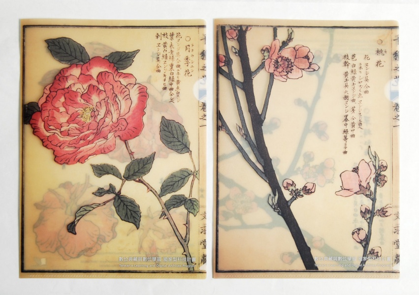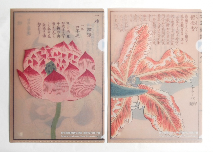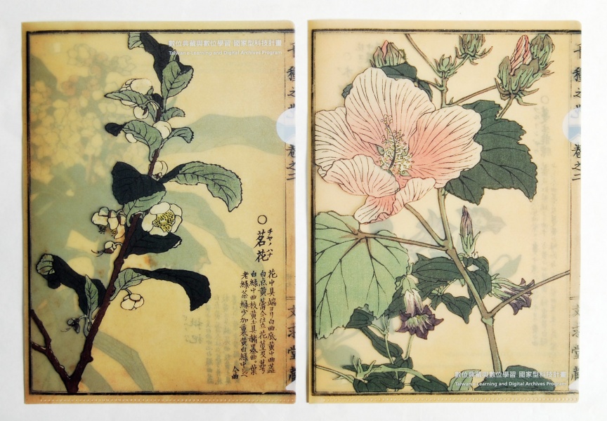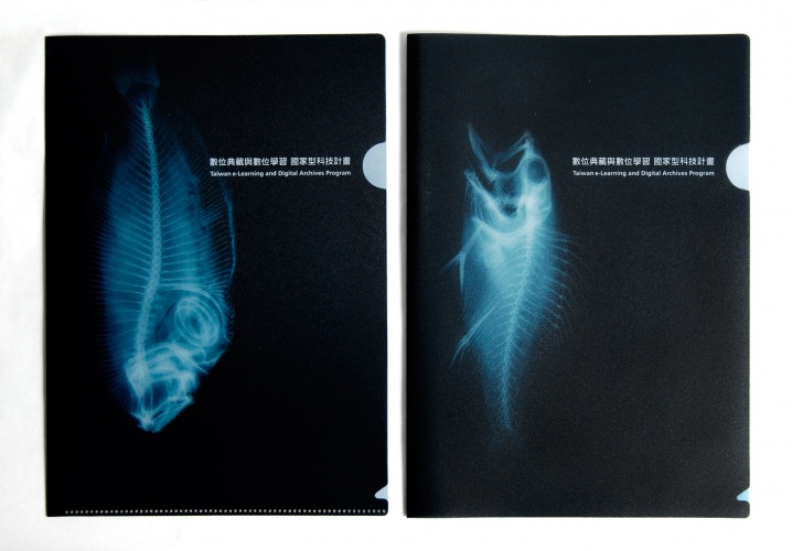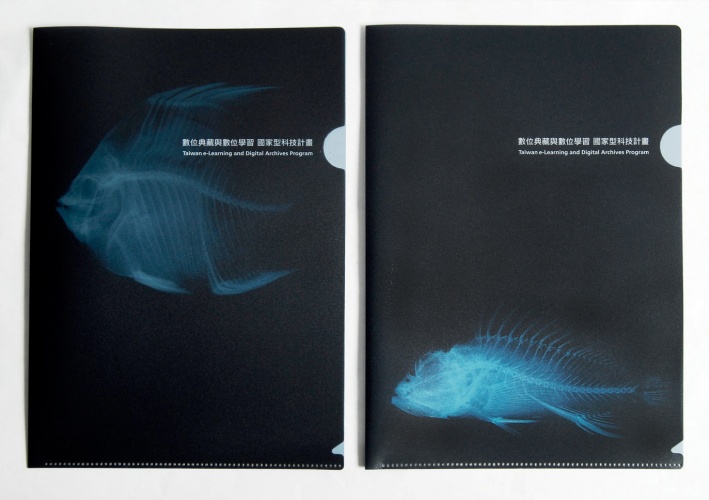 中研院為推廣典藏計畫所委託設計的宣傳品,此檔案夾設計是以利用數位典藏的藏品中,魚類X光片、本草圖譜、千種之花等典藏作為資料夾設計主軸。