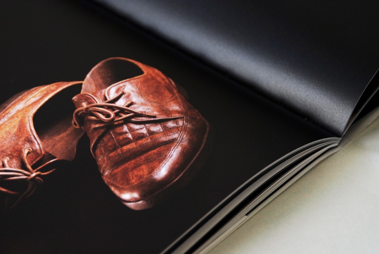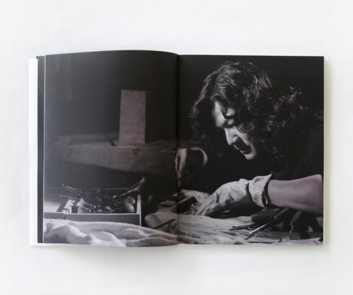 畫冊書衣選用絲絨紙以襯托藝術家細膩高質感的木雕表現,使參觀者一觸碰到畫冊便能直接感受到木雕溫潤的手感,內頁的設計更採用完全的黑色來襯托作品本身,以強調這次的展覽主題,呈現出記憶的本質,更使用水性上光來表現影像的質感對比,提高視覺上的感受。