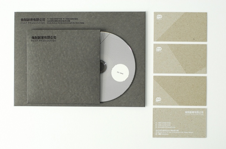 Corporate Identity System of 後制創意, for the business card, La Fou uses cangnan paper and the relief printing plate to emphasize the feel. For the envelope and notebook, we just use black, to let design back to purity.