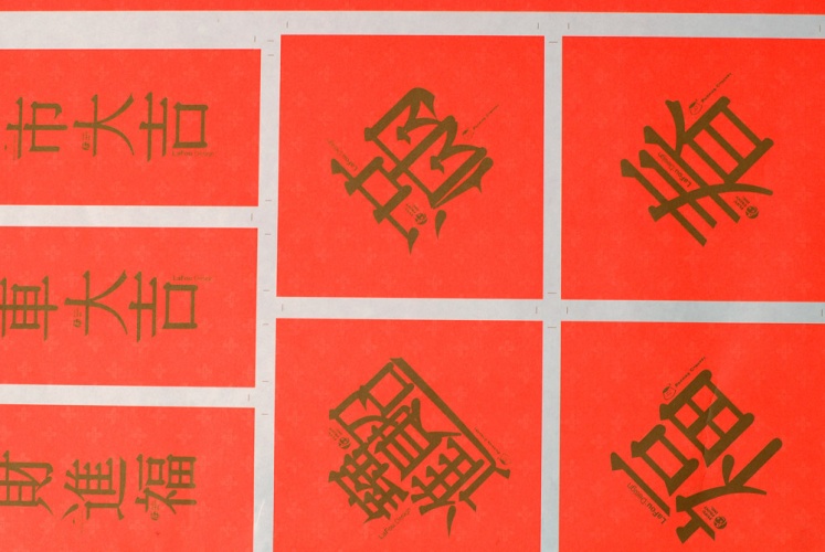 翻玩知名品牌名稱諧音,期許客戶與樂福好朋友們在新的一年都能財源廣進!內含年曆/紅包袋/各式春聯等年節所需產品,並運用中國傳統年節色系:紅與金,純粹凸顯主題,別於市面上複雜多色的節慶商品。