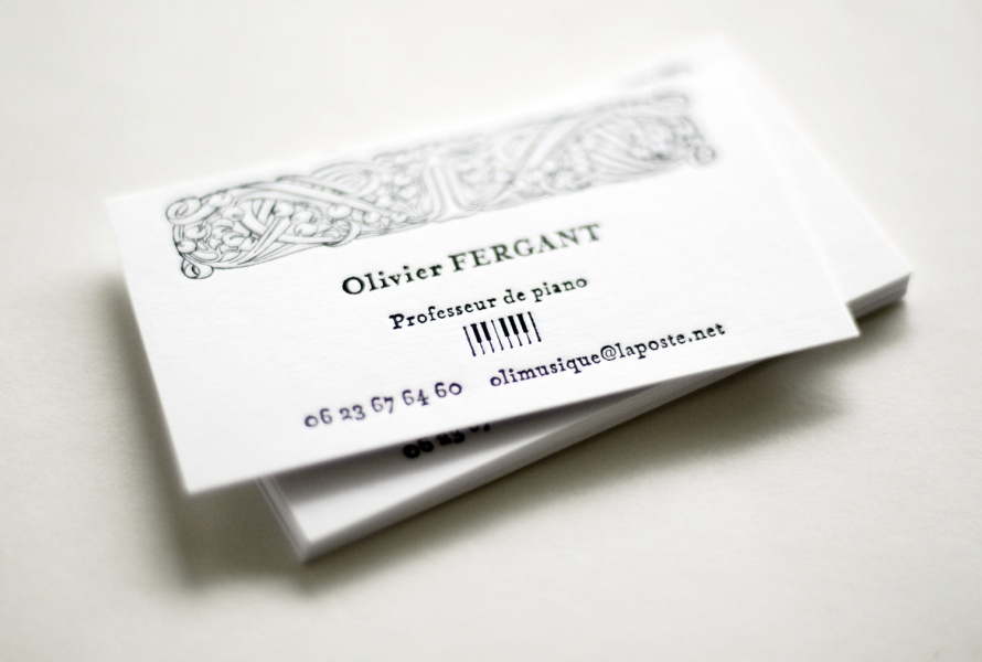 業主是一位法國人,在巴黎教授鋼琴,委託我們設計名片。法國是一個浪漫的國度,而鋼琴是古典音樂的象徵,