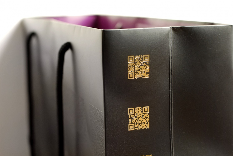 樂福為中研院數位典藏與數位學習單位設計提袋一只,選用黑色為底,搭上黑色磨砂並將字體燙金,內襯以紫色為主佐以書法字體為輔,強化視覺意象。