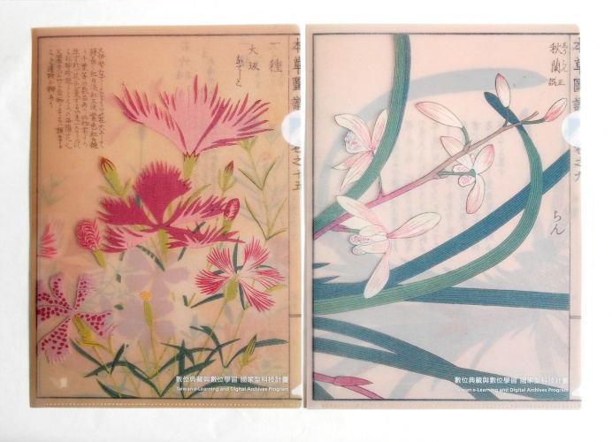 中研院為推廣典藏計畫所委託設計的宣傳品,此檔案夾設計是以利用數位典藏的藏品中,魚類X光片、本草圖譜、千種之花等典藏作為資料夾設計主軸。