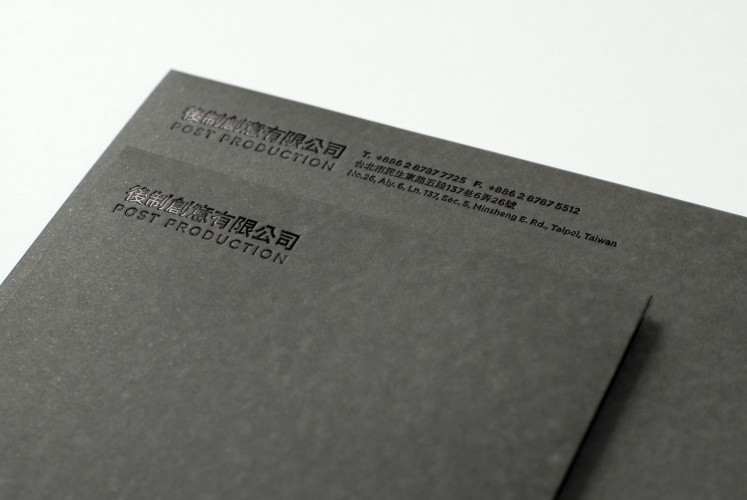 Corporate Identity System of 後制創意, for the business card, La Fou uses cangnan paper and the relief printing plate to emphasize the feel. For the envelope and notebook, we just use black, to let design back to purity.