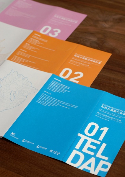 中研院將數位典藏與數位學習國家型科技計畫,分為建置整合 / 公開徵選 / 研發 / 組織表。樂福依據此四大類,選取四種顏色做為區分,以簡單俐落的原則做為排版的指標,讓閱讀者能一目了然,不至於被多餘的圖像混淆。